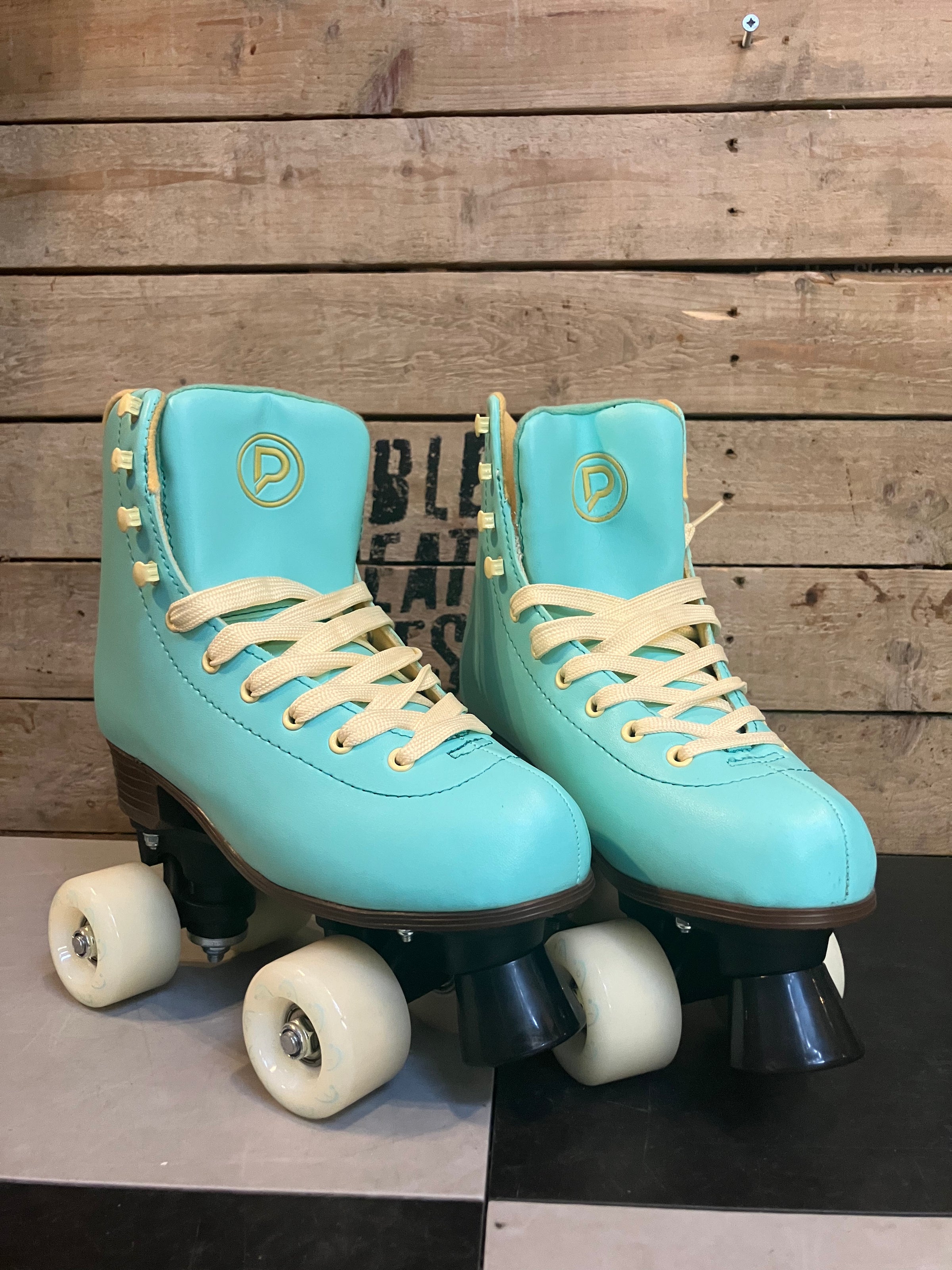 The Powerslide Playlife Sunset Quad Skates are sure to make heads roll when you're out cruising. The boot is based on a classic figure skate outer, finished in turquoise with yellow details. The high cut boot construction is made of PU-leather and gives good support, while internally the padding is made of different foam materials and is anatomically shaped around the ankle area to provide maximum comfort during each skate session. The plate underneath the boot is plastic making the boot lightweight, but strong, responsive and provides a nice smooth ride. Mounted to the plate you will find a full set of eight 54mm x 32mm wheels with a hardness of 78A and fitted with ABEC 7 bearings. There really isn't a better skate on the market for the price.