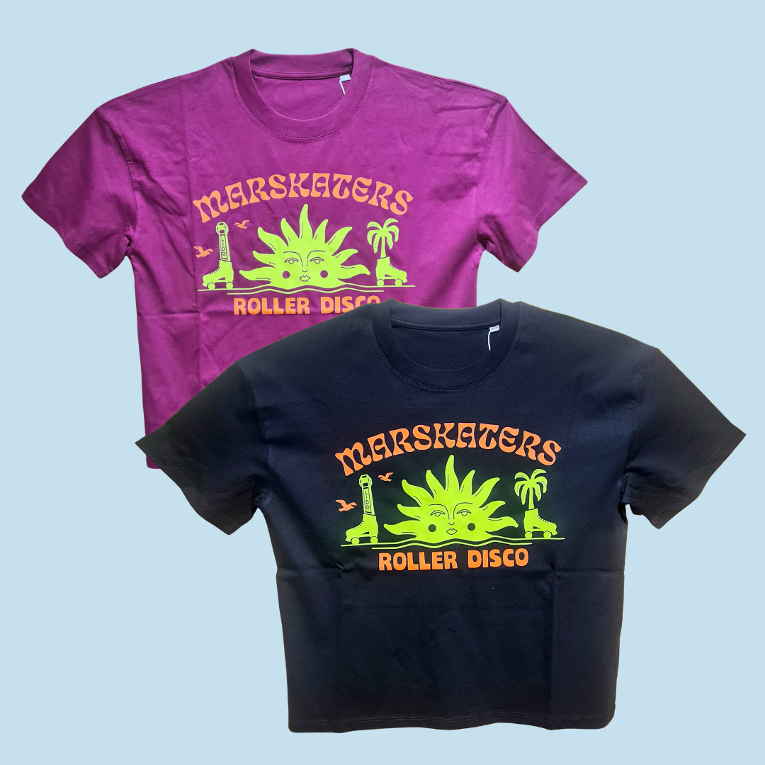 Double Threat Skates teamed up with Mar_Skaters to host regular roller discos on a Friday night (aiming for the last Friday of the month every 2 months) and we designed  and printed some absolutely bangin' merch with all profits going to Trans Club Margate.